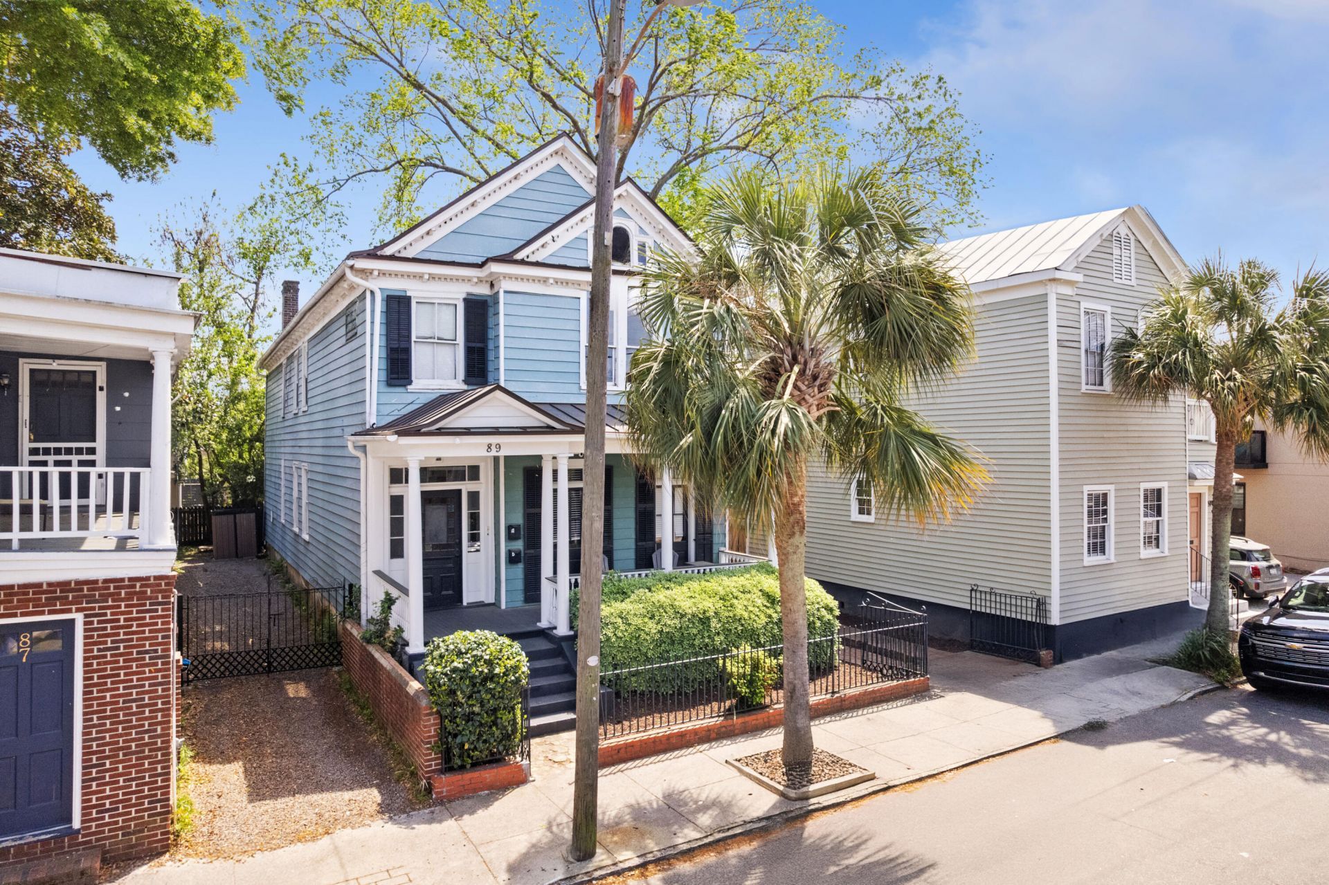 Circa 1895, this charming Victorian duplex offering 2726 square feet is ideally situated in downtown Charleston's vibrant Eastside neighborhood, offering a unique blend of historic character, convenience, and investment potential. All with the rare benefit of off-street parking for FOUR vehicles.Located just steps from some of Charleston's most popular restaurants, cafes, and neighborhood gathering spots along Meeting Street, as well as the renowned dining and shopping of King Street, this home also offers convenient access to the College of Charleston, MUSC, and Trident Tech College.This is a rare opportunity to acquire a fully leased duplex producing over $70,000 in annual rental income, with leases secured through July 31st 2027,providing immediate stability and predictable cash flow. The property has also demonstrated consistent year-over-year rental increases, with strong rental demand and long-term income growth potential.89 Columbus Street has two units, each with its own layout and preserved historic details throughout, including original pine floors (located beneath carpet in the upstairs Unit B), decorative fireplaces, intricate woodwork and trim, transom windows that fill the space with natural light, a welcoming full front porch, and a private balcony for the upper unit.Improvements include a copper roof replacement in 2016, HVAC system replacement for Unit A in 2017, and Unit B in 2019, updated washer and dryer Unit B in 2022 and enclosed attic space.Currently professionally managed, 89 Columbus Street offers a stabilized property with a strong rental history and long-term appreciation potential in one of Charleston's most dynamic and evolving neighborhoods.Unit A: 2 bedrooms, 1 bathroom -- currently leased at $2,600/month (August 1 2025 - July 31 2026), increasing to $2,650/month with current tenant (August 1 2026 - July 31 2027) Tenants pay utilitiesUnit B: 3 bedrooms, 2 bathrooms -- currently leased at $3,300/month (August 1 2025 - July 31 2026), increasing to $3,400/month with new tenants (August 1 2026 - July 31 2027) Tenants pay utilitiesBoth units are separately metered for electricity, and all appliances convey, including washer and dryer in each unit.